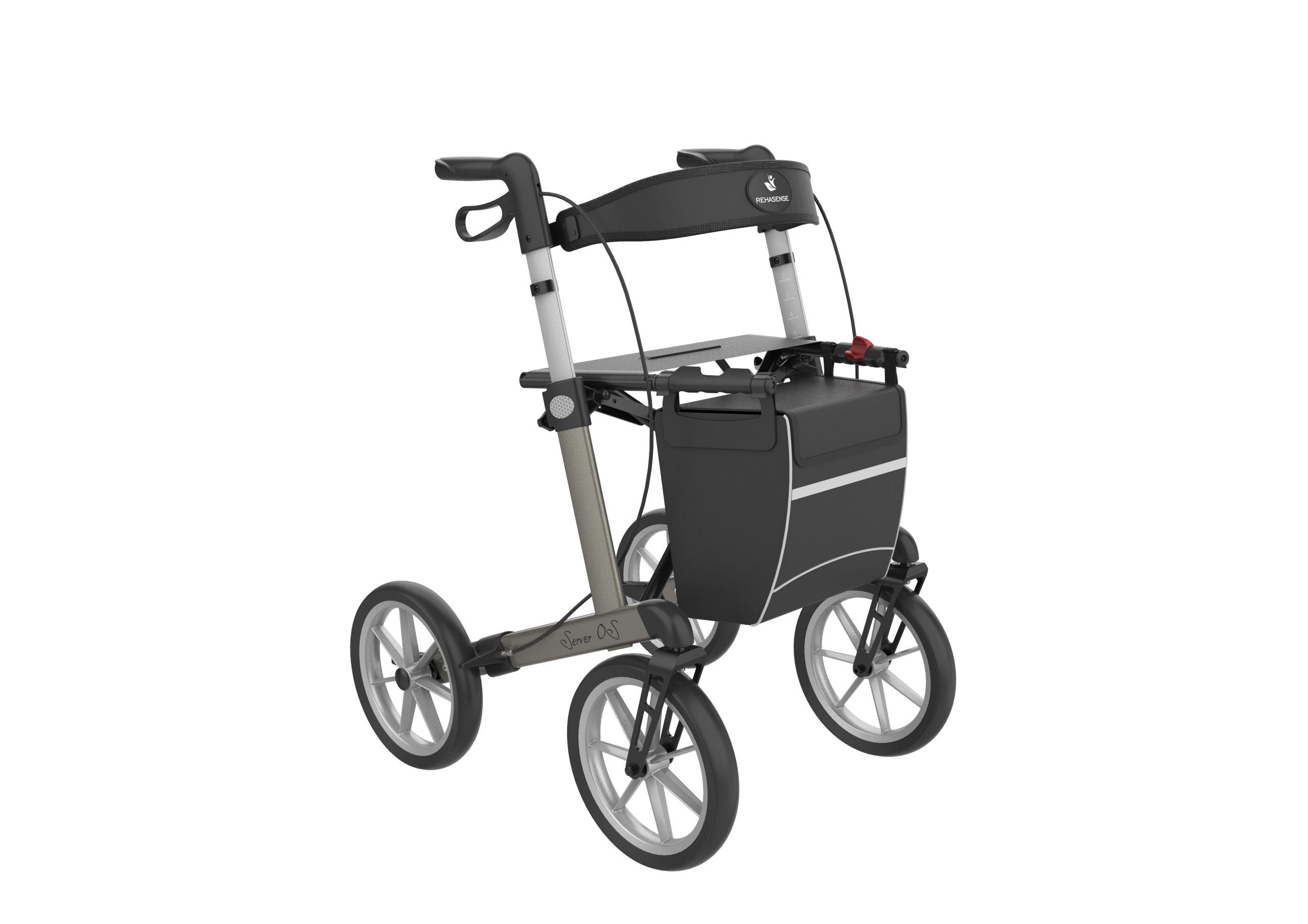 De robuuste Server OS is ontwikkeld voor gebruik buitenshuis, maar doordat hij compacter is dan een standaard buitenrollator is deze rollator uitstekend geschikt om ook binnen te gebruiken. Met grote wielen voor en achter. Doordat hij korter is en net zo breed als een standaard rollator uitstekend te manoeuvreren en iets lichter voor transport.